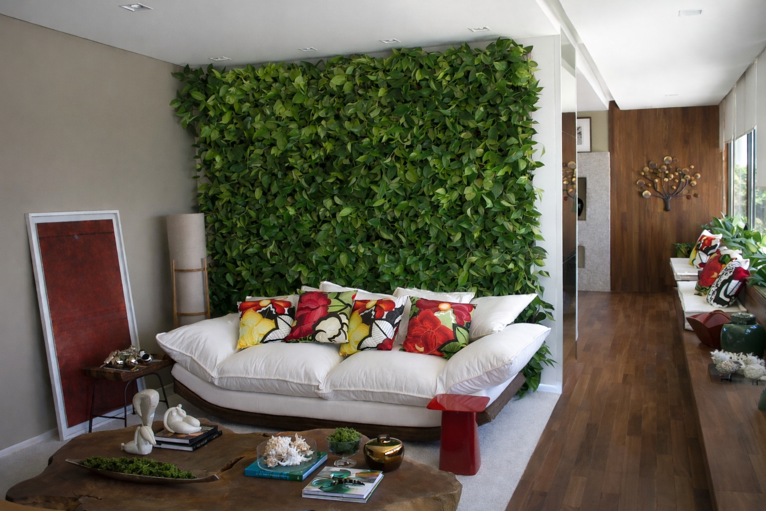 Mais do que um pano de fundo, o painel vegetal tornou-se parte essencial da proposta arquitetônica, um elemento vivo que convida à pausa, à contemplação e ao bem-estar. Esse projeto reafirma como o verde, quando bem aplicado, tem o poder de transformar a experiência dos espaços, tornando-os mais humanos, afetivos e inspiradores.