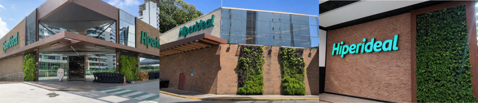 A GALPÃO 5 TEVE O PRAZER DE DESENVOLVER UMA SÉRIE DE PROJETOS DE JARDINS VERTICAIS PERSONALIZADOS PARA DIFERENTES UNIDADES DA REDE DE SUPERMERCADOS HIPERIDEAL,UMA DAS MAIS CONHECIDAS EM SALVADOR E REGIÃO. CADA INTERVENÇÃO FOI PENSADA DE FORMA ÚNICA, RESPEITANDO AS CARACTERÍSTICAS DO ESPAÇO E AS NECESSIDADES DE CADA LOCAL, MAS MANTENDO SEMPRE O NOSSO COMPROMISSO COM A ESTÉTICA, A FUNCIONALIDADE E A SUSTENTABILIDADE.