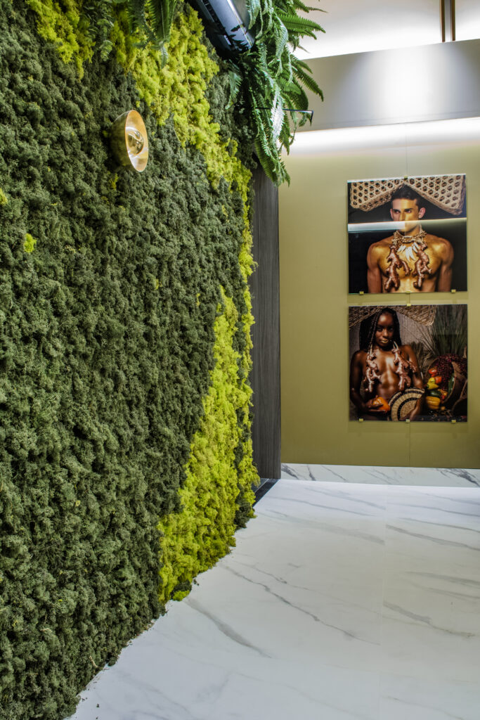 O jardim vertical preservado utiliza plantas naturais que passam por um processo de conservação, no qual a seiva é substituída por uma solução preservante biodegradável. Esse tratamento mantém a aparência, a textura e a beleza das plantas por muitos anos, sem a necessidade de água, luz solar ou adubação.